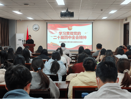 为深入学习贯彻党的二十届四中全会精神,引导青年学子将个人成长融入到国家发展大局中,11月26日下午,我部研究生第三党支部在地学楼二楼报告厅开展“学习贯彻党的二十届四中全会精神”主题党日活动。此次活动由支部书记刘方主持,支部全体党员、入党积极分子参加。 活动伊始,刘方同志为全体党员进行了理论解读。她深入阐释了党的二十届四中全会精神的核心要义,详细解读了“十五五”规划建议的重要意义,明确了此次主题党日活动的要求。...
