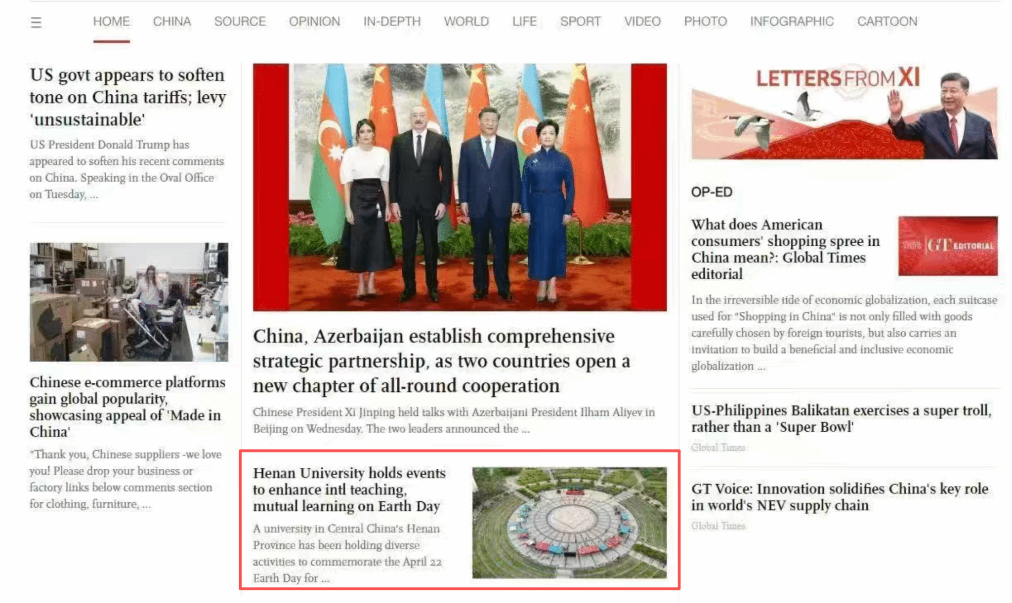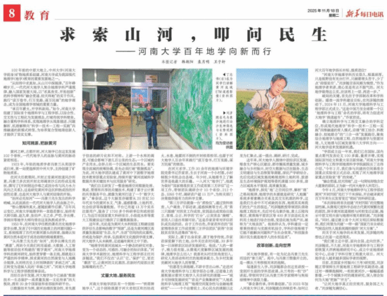 地理学科持续举办了34年“地球日”——“球生之路”活动,今年独特的国际化育人模式创建,得到Global Times关注并头版报道;新华每日电讯刊发了百年河大地学《求索山河,叩问民生》专题报道,突出了人与自然和谐共生的现代化和“两山论”创新实践。