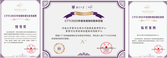 践行地理学科服务社会的初心使命,2025年黄河文明与可持续发展研究中心入选CTTI智库百强A+,两项成果获CTTI特等奖、二等奖,3份咨询报告得到中央领导批示、多部委重视,为黄河流域国家战略、乡村全面振兴注入强劲智力支撑。