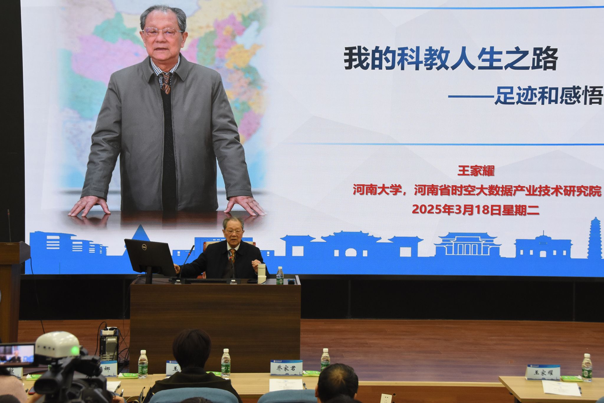3月18日,由科学技术研究院、地理科学与工程学部、生命科学学院、医学院、交叉学科高等研究院、河南省生物物理学会联合开展的河南大学“X+医学”学科交叉交流会(X + Medicine Interdisciplinary Biweekly Seminar, “X+MIBS”)第089-2025-02期(总第89期)及铁塔之光科学家精神思政课在金明校区锥形报告厅举行。中国工程院院士、河南省时空大数据产业技术研究院院长王家耀受邀作《我的科教人生之路——足迹和感悟》主题报告,党委组织部副部长王玉珍、教师中心副主任王波、新闻与传播学院党委书记乔石豪、基础医学院副院长柴立辉、纳米科学与工程研究院副主任张俨娜等嘉宾参与座谈,线上线下5000余名师生参会,报告会由地理科学学院党委书记乔家君主持。