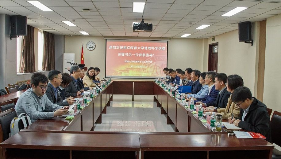 4月8日上午,南京师范大学地理科学学院党委书记苏锦、院长黄昌春带领班子成员及相关老师一行来访,河南大学学术副校长、地理科学与工程学部主任刘彦随,地理学部副主任、黄河文明与可持续发展研究中心主任苗长虹,地理学部委员秦奋,地理学部委员、地理科学学院党委书记乔家君,地理学部委员、地理科学学院执行院长赵威,地理学部委员潘少奇及学部相关成员、地理科学学院其他班子成员参加座谈。座谈会由苗长虹主持。