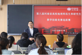 我部举办第八届河南省高校地理师范生和研究生教学技能竞赛选拔赛,分本科生、研究生两组开展。11月5日下午,本科生组选拔赛在金明校区综合教学楼举行,学院副院长丁志伟致辞并解读赛程规则。翟彬、朱文博等担任评委,选手围绕世界洋流规律、城市辐射功能等主题授课,最终评选出特等奖2名、一等奖3名、二等奖5名。11月6日上午,举办研究生组选拔赛,学院副院长谷蕾介绍评委并说明比赛细则。选手现场抽题模拟授课,围绕气压带风带对气候的影响等主题展开讲解,经评议决出特等奖3名、一等奖3名、二等奖4名、三等奖5名。此次赛事搭建了“以赛促学、以赛促教”的平台,检验了学子专业素养,提升了教学实践能力。