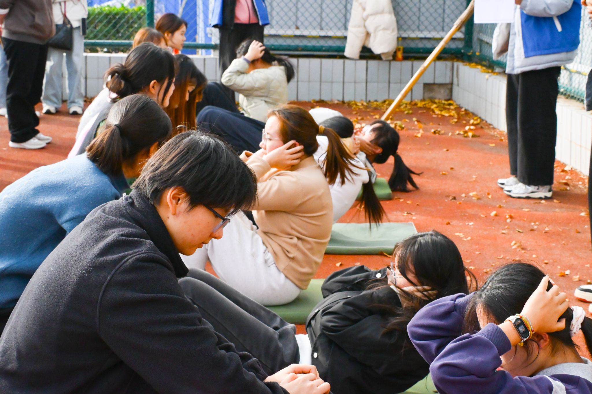 在仰卧起坐赛场,选手们腰背发力、动作干净利落,展现出核心力量与坚韧耐力风采。