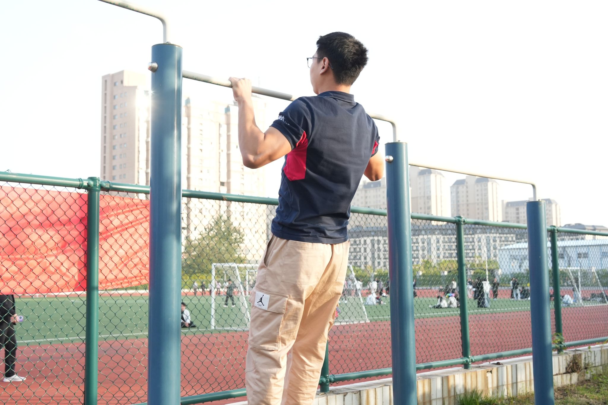 白色单杠上,参赛选手双拳紧握,肌肉绷紧、手臂发力,身体随节奏一次次向上拉起——“一下,两下……”选手的内心默念着,观众们的心也跟着他的动作紧张起来。