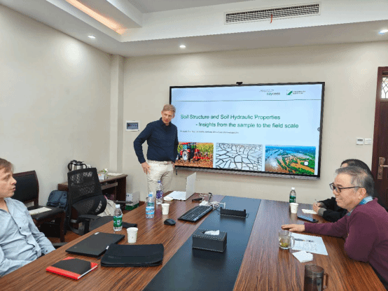 2025年11月4日,应学部秦明周教授邀请,德国拜罗伊特大学生物、化学和地球科学部土壤物理系主席、丹麦哥本哈根大学植物与环境学院Efstathios Diamantopoulos教授及其团队成员Frederic Leuther助理教授于地学楼三楼301会议室分别作题为《从土地利用到溪流和地下水:通过考虑土壤物理特性来改进污染物传输模型》与《土壤结构与土壤水力特性:从样本层面到整体范围的分析结论》的专题报告。报告会由秦明周教授主持,我院相关专业师生参与了此次交流研讨。