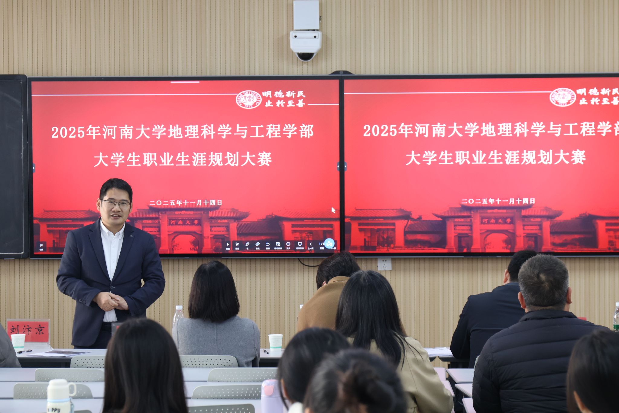 研究生组选拔赛于在金明校区综合教学楼3101教室举行,我部地理科学学院副院长谷蕾、地理信息科学系系主任翟石艳、地理工程系教师冯巍仑、环境科学系教师蔡北溟、第二届全国大学生职业规划大赛河南省决赛银奖获得者、就业指导中心研究生刘汴京担任评委。我部2025级本科生王齐晨伊主持。