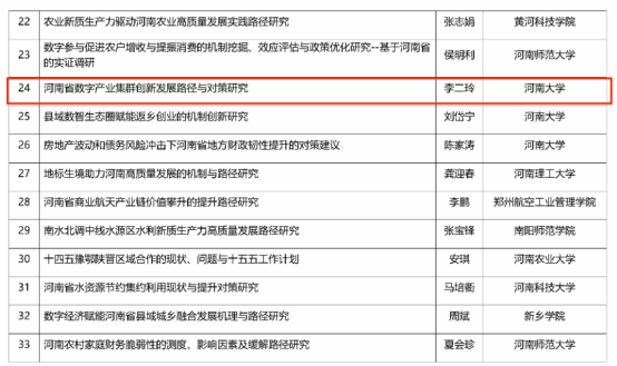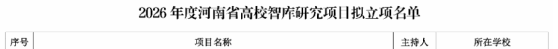 11月12日,依据《河南省教育厅办公室关于开展2026年度河南省高等学校智库研究项目申报工作的通知》部署,经学校推荐、专家评审、省教育厅审定等环节,2026年度河南省高等学校智库研究项目拟立项名单正式公示,我部李二玲老师申报的项目成功入选。