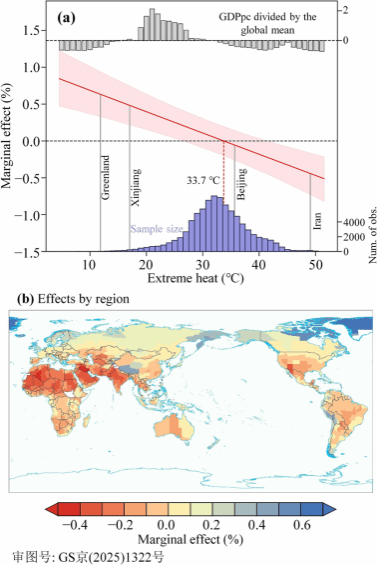 近日,学部主任刘彦随教授和董冠鹏教授团队在《Science Bulletin》第19期发表论文,针对传统气候变化计量经济模型无法准确刻画极端高温影响的空间传导过程与尺度差异、导致经济损失被系统性低估的问题,创新构建多尺度时空统计模型并推导贝叶斯马尔可夫链蒙特卡洛求解算法。该模型可系统建模尺度交互作用、空间自相关效应和尺度差异,能精准刻画极端高温效应的空间传导过程,为气候变化影响评估提供新技术;团队基于此模型首次量化了极端高温对全球经济产出的影响及国家和区域尺度的空间传导过程,得出多项关键研究发现,不仅为极端气候经济损失精准测度提供新方法,也为全球气候适应策略和供应链韧性建设提供重要决策依据。
