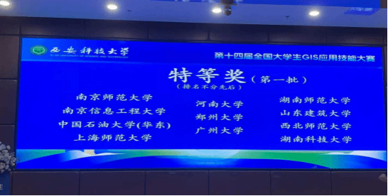 近日,在第十四届全国大学生GIS应用技能大赛中,我部宋宏权、赵芳老师指导的于潇博、廉昊轩、郑君威、温宜凡四位同学表现卓越,荣获大赛特等奖;宋宏权、赵芳老师也凭借出色的指导工作,荣获特等奖优秀指导老师称号。此次大赛中斩获佳绩,充分展现了我部在GIS专业人才培养、实践教学及师生科研创新能力等方面的突出实力。未来,我部将继续秉持以赛促教、以赛促学的理念,鼓励师生积极参与各类高水平赛事,不断提升人才培养质量与学科竞争力,为地理信息科学领域输送更多优秀人才。