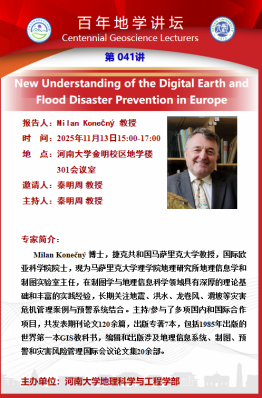 11月13日,“百年地学讲坛”第041讲在地学楼301会议室举行,本次讲坛特邀捷克共和国马萨里克大学Milan Konečný教授为学部师生作主题报告,会议由秦明周教授邀请并主持。Milan Konečný教授在讲座中,先解析数字地球技术在数据集成、空间分析等方面的优势,以欧洲莱茵河、多瑙河流域洪水为例,展示其如何构建“监测-预警-响应”洪水防治体系。本次讲坛不仅为师生们搭建了与国际顶尖学者对话的平台,更拓宽了大家在数字地球与灾害防治领域的学术视野,对推动学部在地理信息科学、灾害风险管理等方向的学科建设与科研创新具有重要意义。