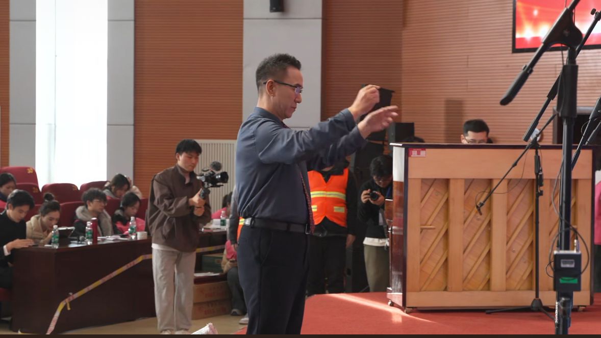 本次比赛将从音准节奏、声音和谐、声部层次、艺术处理以及精神风貌五个核心维度对各参赛队伍进行综合评定。刘彦随浑厚有力的声线与吕燕敏的深情领诵相得益彰,他们以地理人独特的视角,深情诠释了学科的使命与担当——从坚守中原首个千米深钻的81个昼夜,到从千米地层中解读5000年文明密码的赤子情怀;从叩问华夏根基、探寻人地和谐的学术追求,到以沉积序列重现中原崛起轨迹的科学理想。在傅声雷沉稳的指挥下,我部76位教职工随音乐节拍轻轻律动,将团队协作的精神风貌展现得淋漓尽致。