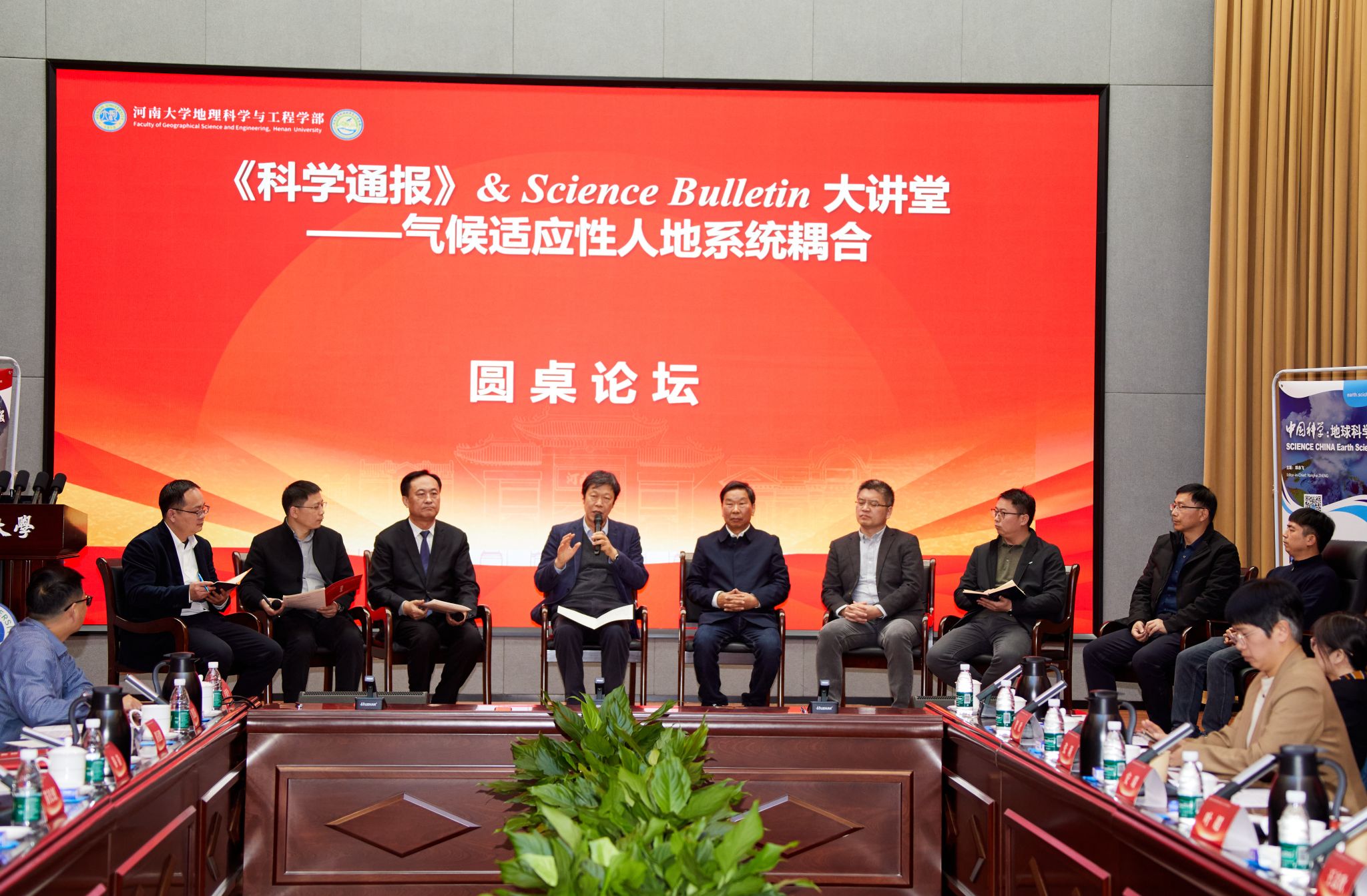 在与会嘉宾的共同见证下,《科学通报》& Science Bulletin 执行主编陈发虎院士、《中国科学》杂志社代表王志欣、安瑞、张莉、智欣,与河南大学代表刘彦随、傅声雷、苗长虹、乔家君、郭浩共同为郑州办公室揭牌。