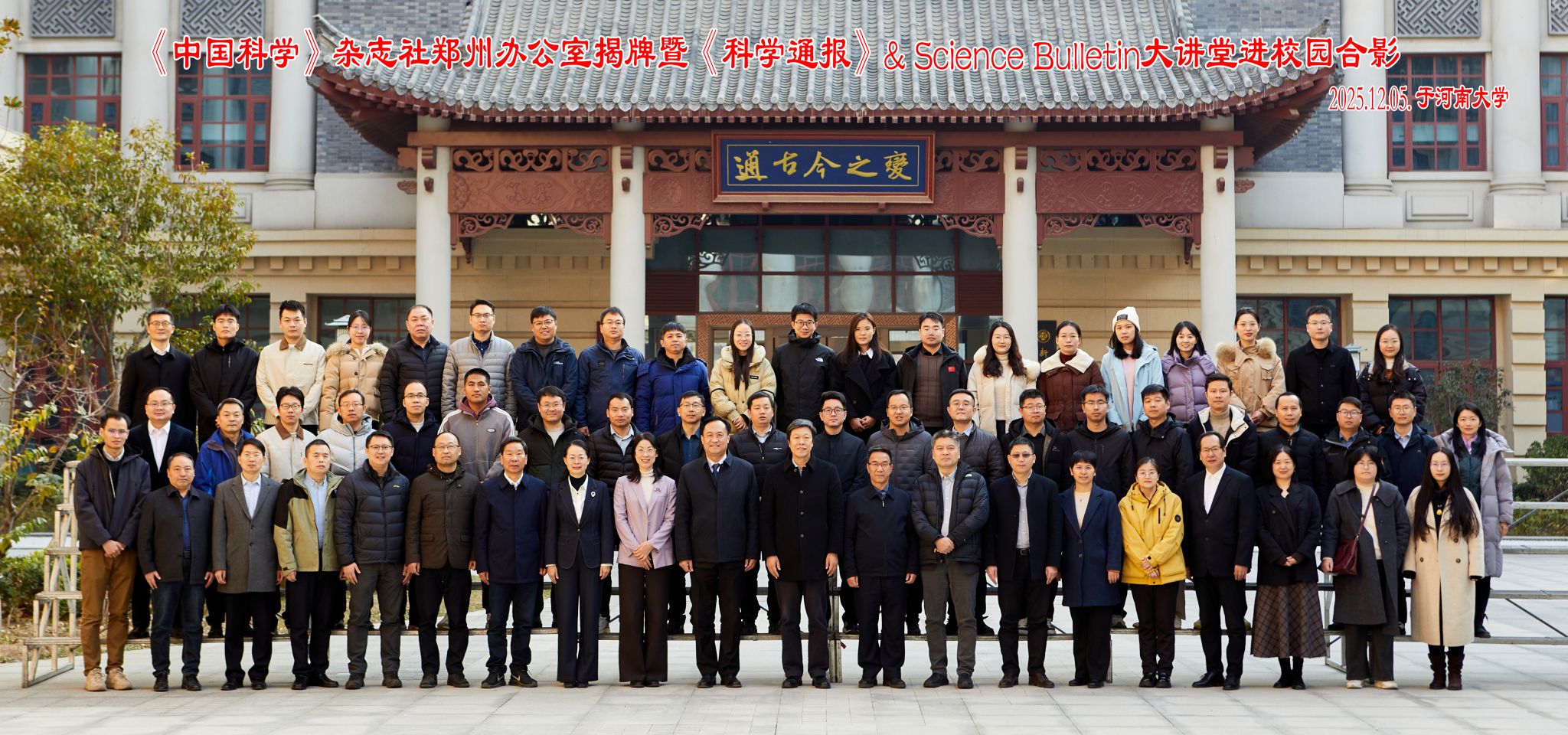 2025年12月5日上午,由《科学通报》& Science Bulletin主办、河南大学地理科学与工程学部承办的“《中国科学》杂志社郑州办公室揭牌暨《科学通报》& Science Bulletin大讲堂进校园”活动在河南大学龙子湖校区成功举办。中国科学院院士陈发虎、河南大学学术副校刘彦随、以及来自《中国科学》杂志社、河南大学、复旦大学、中国科学院青藏高原研究所、地理科学与资源研究所、地球环境研究所等单位的专家学者及师生代表齐聚一堂,共同见证《中国科学》杂志社郑州办公室揭牌,并围绕“气候适应性人地系统耦合”主题展开深入学术交流。