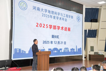 苗长虹在开幕式作地理学部年度学术进展与学科发展汇报。他从学科布局优化、师资队伍建设、科研平台搭建、人才培养质量、社会服务成效等五大维度,全面梳理了河南大学地理学科建设进展、发展态势和标志性成果,客观分析了当前仍存在的一些短板与不足,并结合国家战略需求和区域发展实际,明确了下一阶段地理学科建设的重点任务与创新路径。