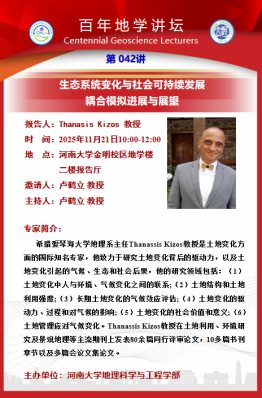11月21日,“百年地学讲坛”第042讲在地学楼二楼报告厅举行,本次讲坛特邀希腊爱琴海大学地理系主任Thanassis Kizos教授为学部师生作主题报告,会议由卢鹤立教授邀请并主持。Thanassis Kizos教授首先从全球生态系统变化的宏观背景切入,系统阐释了土地变化作为生态系统与社会系统交互的核心载体,如何通过土地利用强度、结构变化等路径,引发气候效应、生态服务功能变迁及社会经济连锁反应。本次讲坛不仅为师生们搭建了与国际顶尖学者对话的平台,更拓宽了大家在生态系统与社会可持续发展交叉领域的学术视野,对推动学部在土地变化科学、可持续发展研究等方向的学科建设与科研创新具有重要意义。