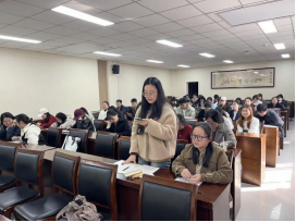 为深刻领会党的二十届四中全会的重大意义与精神实质,引导支部党员统一思想、凝聚共识,2025年11月26日,研究生第一党支部于学院二楼报告厅顺利举办了“深入学习贯彻党的二十届四中全会精神”主题学习党日活动。本次活动由党支部书记卞荷雨主持,全体党员和部分积极分子参加。
