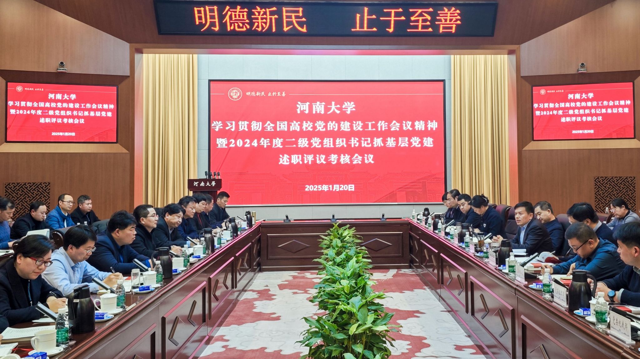 1月20日下午,学校在郑州龙子湖校区召开了学习贯彻全国高校党的建设工作会议精神暨2024年度二级党组织书记抓基层党建述职评议考核会议,全体在校校领导、部分职能部门负责人、各二级党组织负责人及师生代表参加会议。会议由校党委副书记杨萌芽主持。