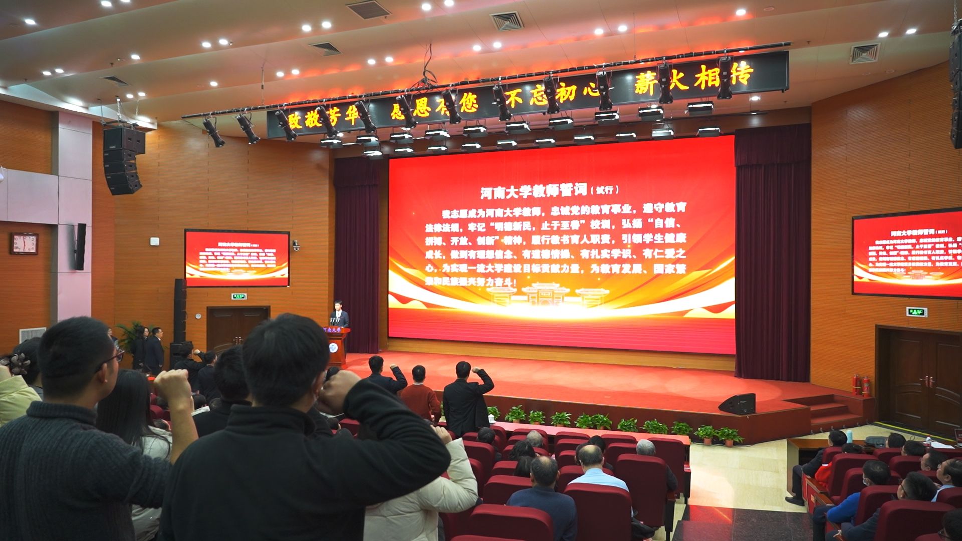百年河大,因人而兴,再启新程,弦歌不辍。学校已连续两年举办荣休典礼,今年开创性地将荣休与新教师入职宣誓仪式融合,为来自教学、科研、管理一线的荣休教职工送上最真挚的祝福,向新入职教师表达最热烈的欢迎。此次典礼不仅是对荣休教职工职业生涯的一次深情致敬,更是新一代河大人接过前辈奋斗薪火、续写辉煌篇章的庄严宣誓。学校将以此为契机,继续弘扬尊师重教传统美德,激发全校教职工的责任感和使命感,提升荣誉感、获得感、幸福感,携手并进共同谱写河南大学高质量发展的绚丽篇章。