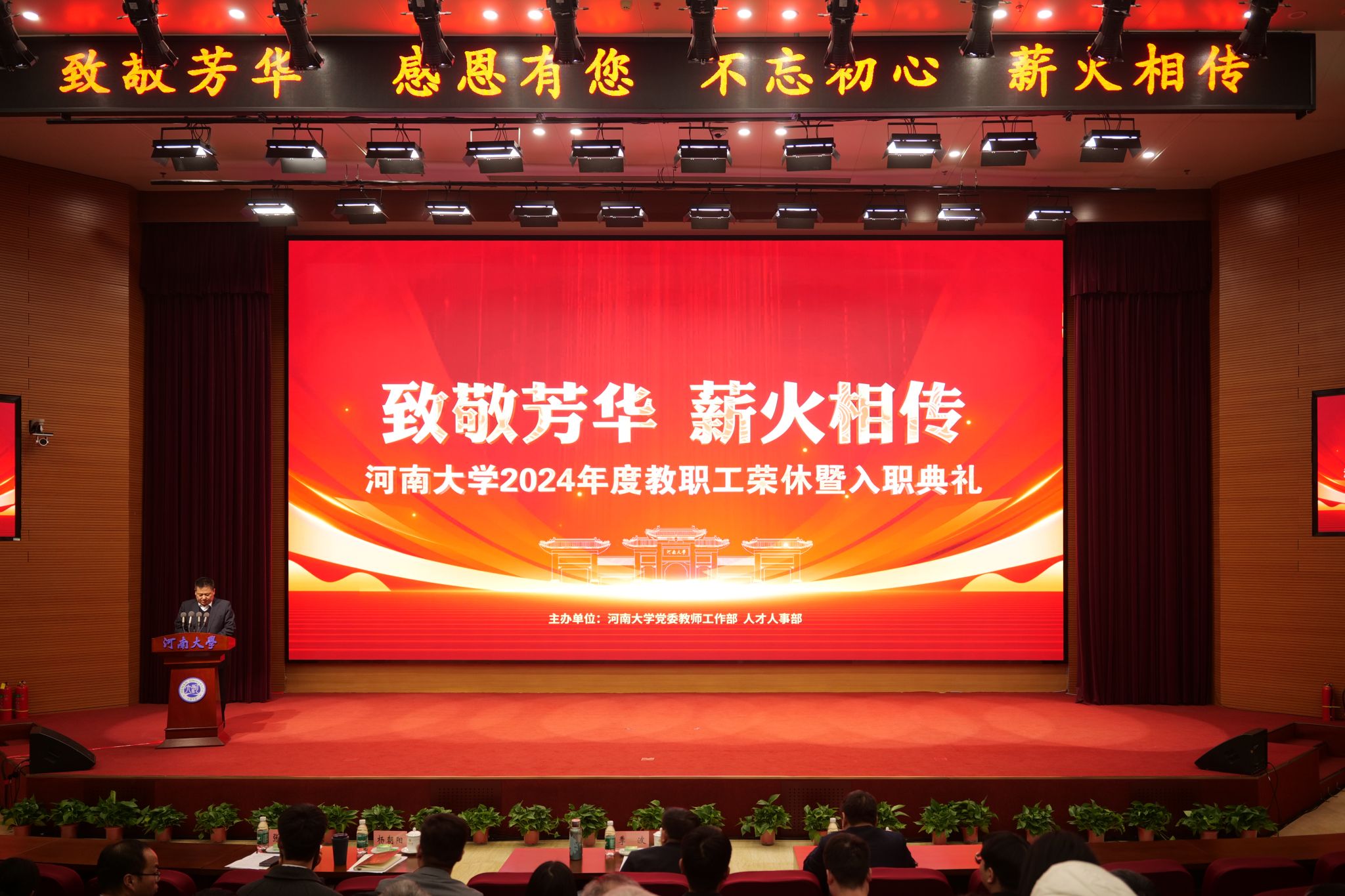 典礼上,副校长乔梁宣读了《河南大学2024年度荣休教职工名单》,介绍了学校2024年新进教职工的整体情况。