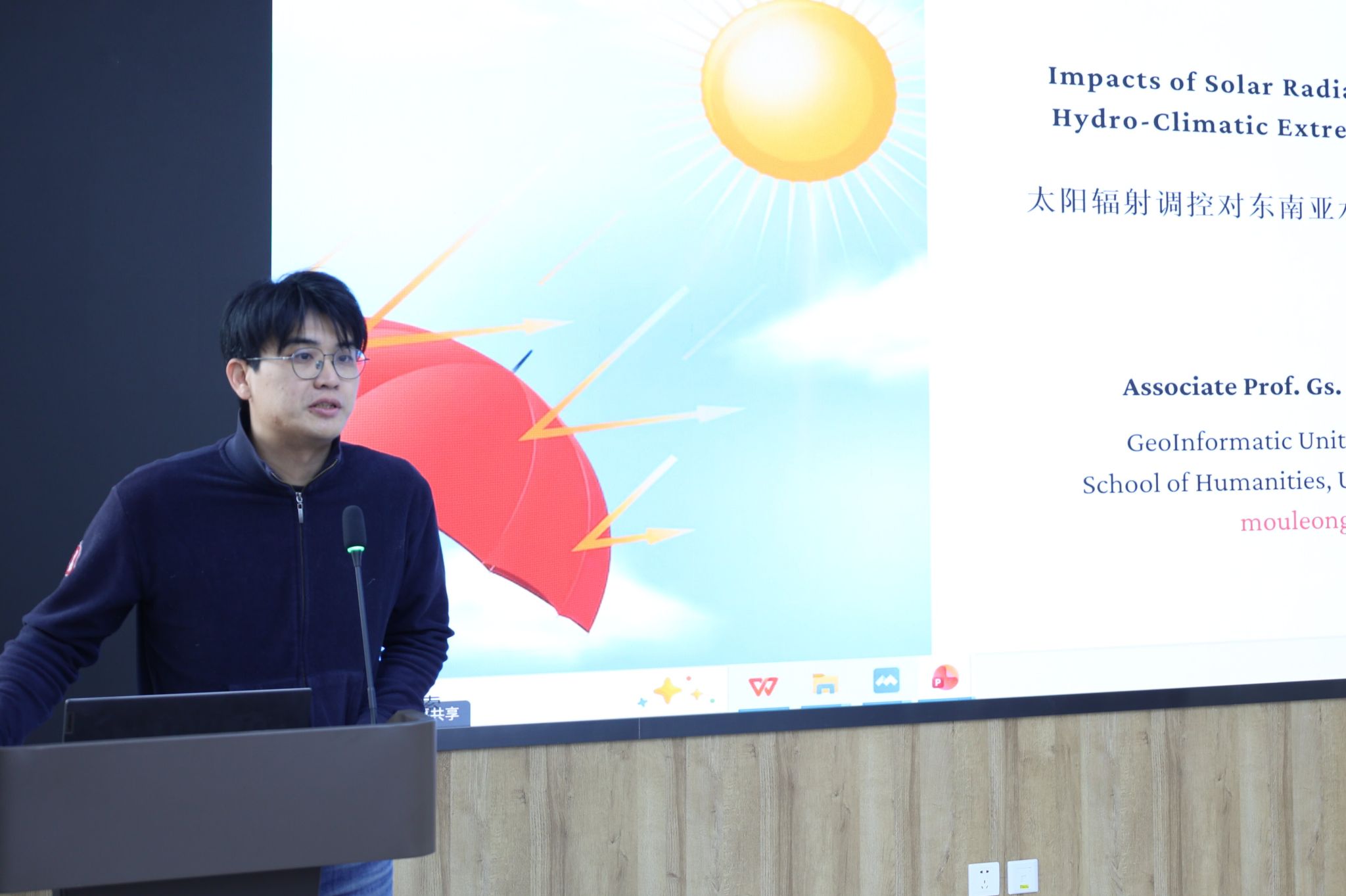 陈茂龙以“太阳辐射调控对东南亚水文气候极端事件的影响”为题,深入剖析了太阳辐射作为关键驱动因子,在东南亚区域水文循环与极端气候事件中的作用机制。系统阐述了如何结合卫星与地理空间技术,提升该区域灾害监测与预警能力,并分享了在流域水资源管理、极端天气监测等方面的前沿研究成果。报告结束后,陈茂龙一行与王家耀院士团队就建设跨国科研观测平台、申请国际联合项目、教师互访、学生联培等合作项目进行了深入交流。