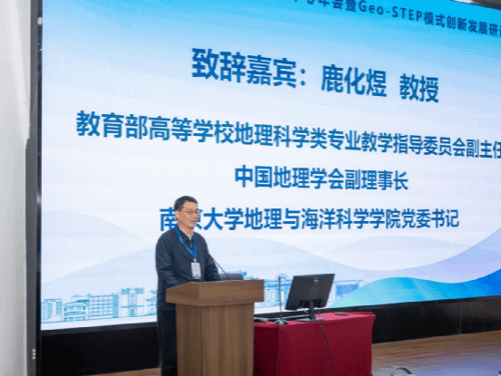 教育部高等学校地理科学类专业教学指导委员会副主任、中国地理学会副理事长、南京大学地理与海洋科学学院党委书记鹿化煜教授致辞