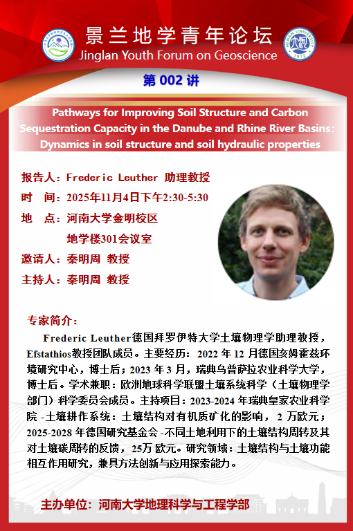 百年地学讲坛|Soil Physics and Hydrology Insights in the Danube and Rhine River Basins: From land use to streams and groundwater: Advancing pollutant transport models by accounting for soil
